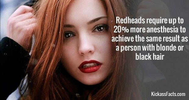 Several medical studies have found that natural redheads may require about 15–20% more anesthesia to achieve the same level of sedation as people with other hair colors.
